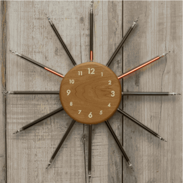 It is read just like any other analog clock or watch. The fully lit tube is the "long hand" which shows the minutes, and the half lit tube is the "short hand" which shows the hours. There are also a few different ticking animations (two of which can be seen in the video above). Or, if you prefer, the clock can show only the hour and minute hands with no other movement. Setting the time and display is done with two buttons on the back.